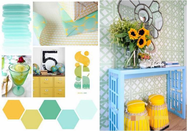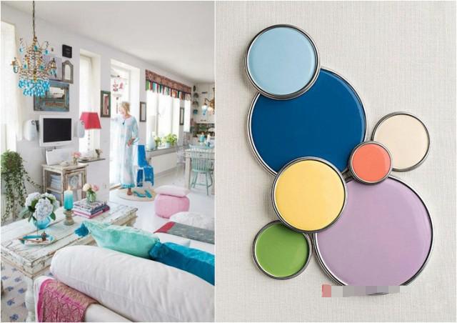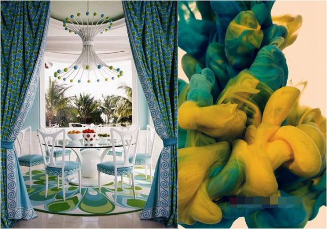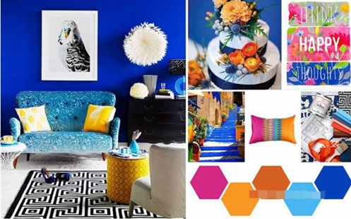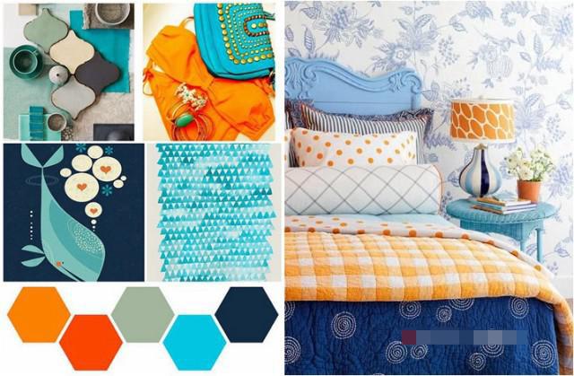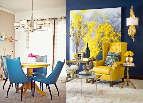藍(lán)色與枚紅色、黃色搭配讓空間充滿時尚、青春活力,配以深藍(lán)色和白色讓空間沉穩(wěn)安靜下來,比例很重要。