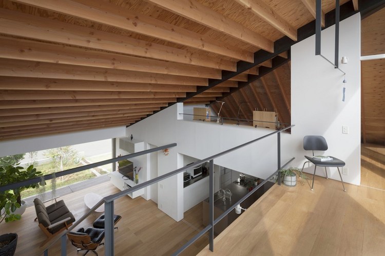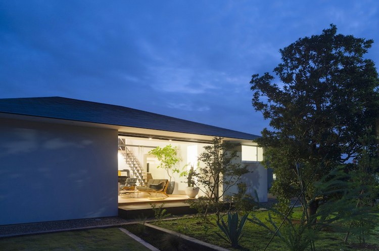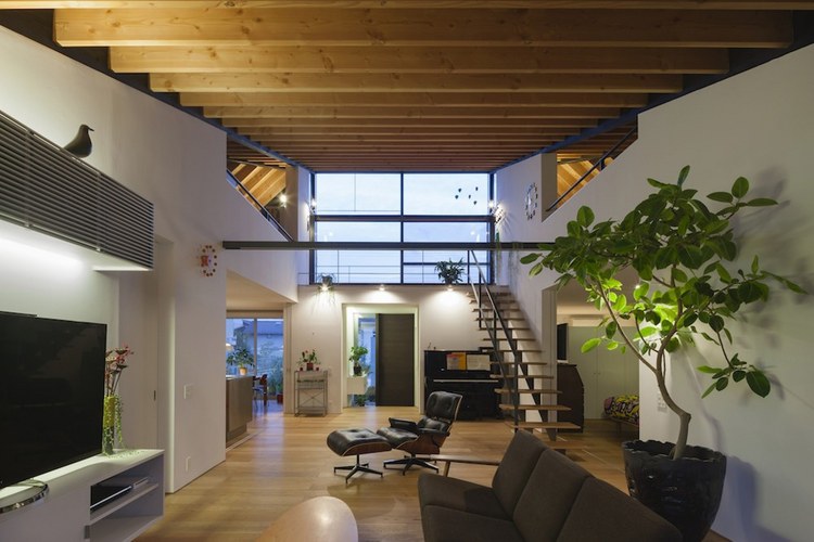 房屋內有一個開放的客廳,與主臥相交,浴室、餐廳、廚房及洗手間位于外部區域??蛷d空間的橫向延伸,通過“天臺”(或陽臺樣中間空間位于內部與外部之間)對外界。生活的空間,可自由分割為必要的滑動門,提供適當程度的隱私和家庭成員聚集地的同時,和日本傳統住宅一樣。